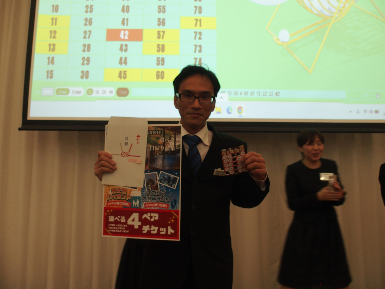 会の中で一番盛り上がったのは、恒例のビンゴ大会です。
