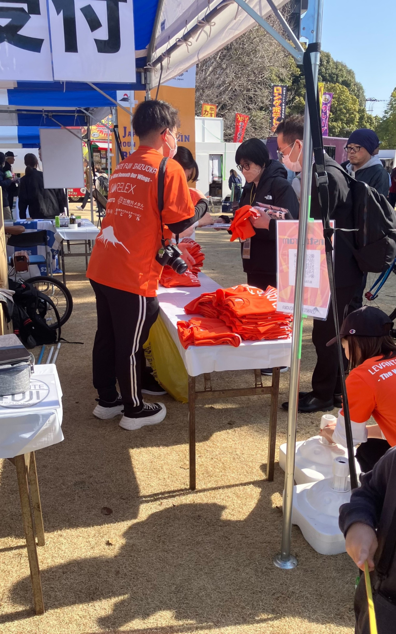 ホームチームとして、気合十分の様子のレバンテフジ静岡、来場者へ記念応援Tシャツ1,500枚が配布されており、オレンジ一色の応援ムードが出来上がっていました。