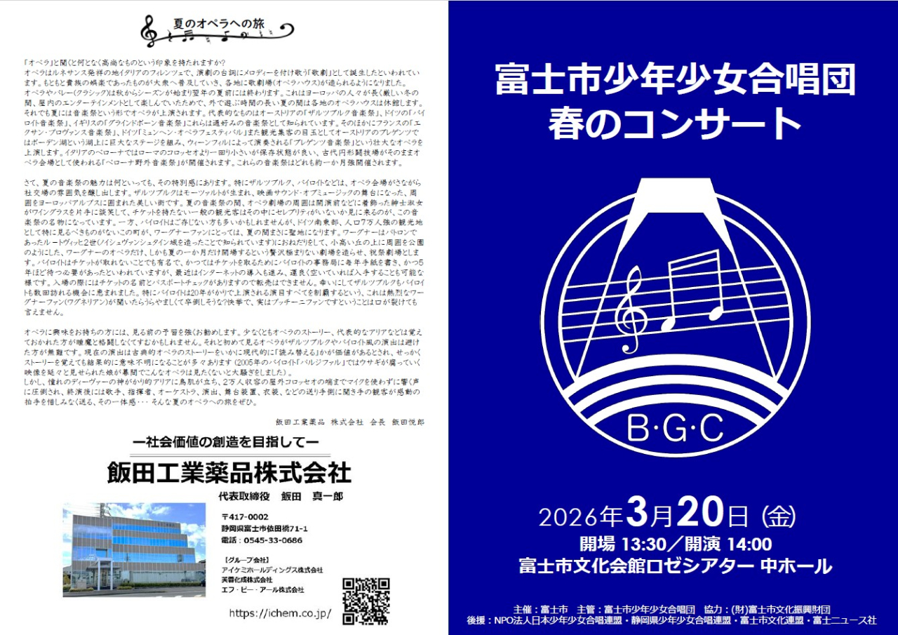 弊社では、富士市少年少女合唱団に長年、活動支援(協賛)しています。
